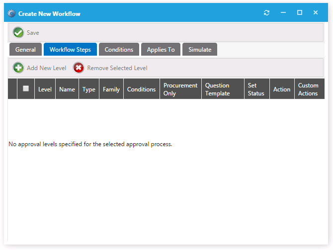 22. Click Save. The new approval workflow is now listed on the Workflows View.